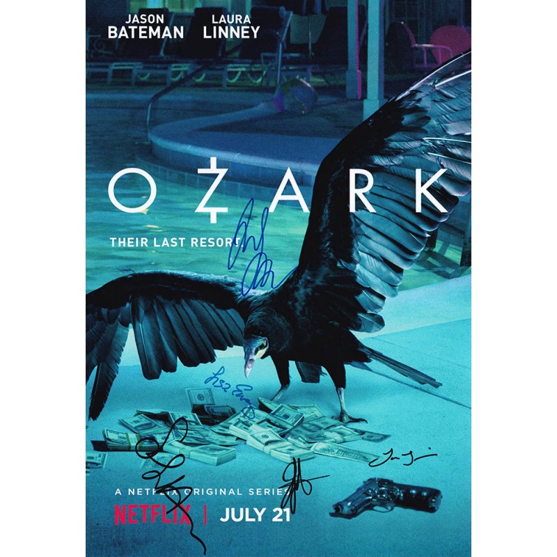 Movie memorabilia autographed by Jason Bateman, Laura Linney, Julia Garner, Sofia Hublitz, and Lisa Emery.