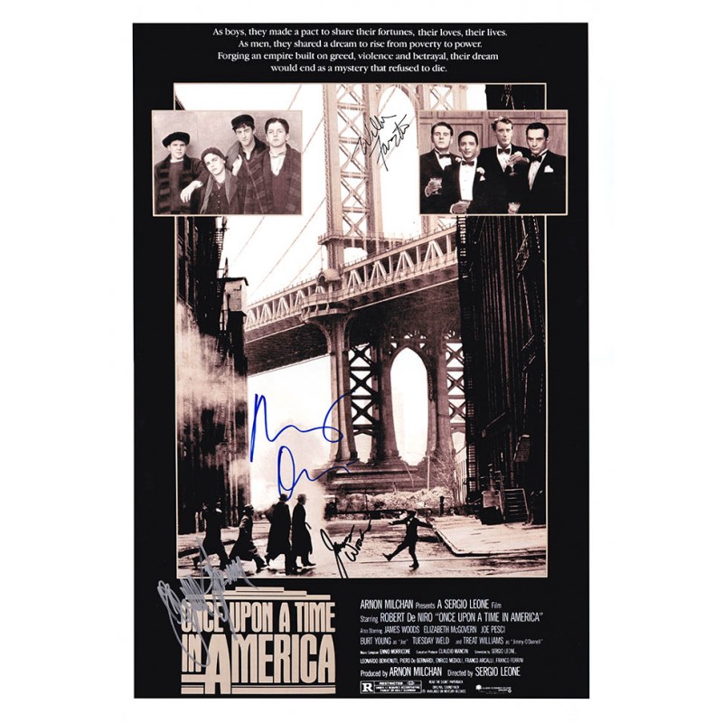 Movie memorabilia autographed by Robert De Niro, James Woods, Elizabeth McGovern, and William Forsythe.