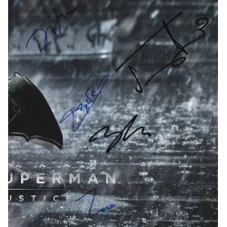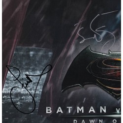 Movie memorabilia autographed by Henry Cavill, Ben Affleck, Gal Gadot, Jesse Eisenberg, Amy Adams, Diane Lane, Michael Shannon, Jeremy Irons, Laurence Fishburne, Tao Okamoto, and director Zack Snyder.