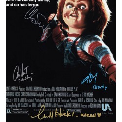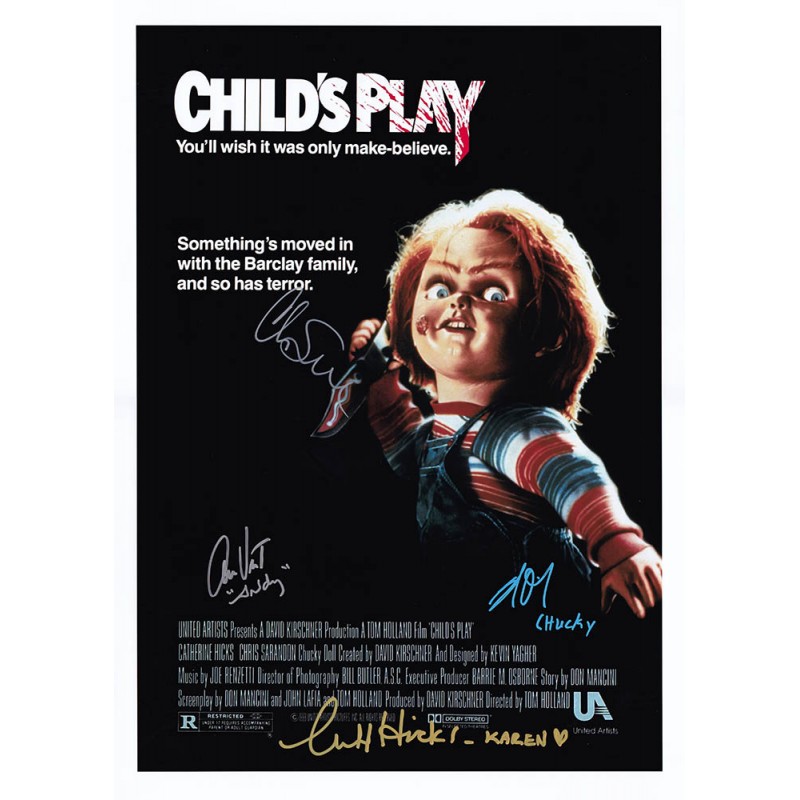 Movie memorabilia autographed by Chris Sarandon, Brad Dourif, Catherine Hicks, and Alex Vincent.