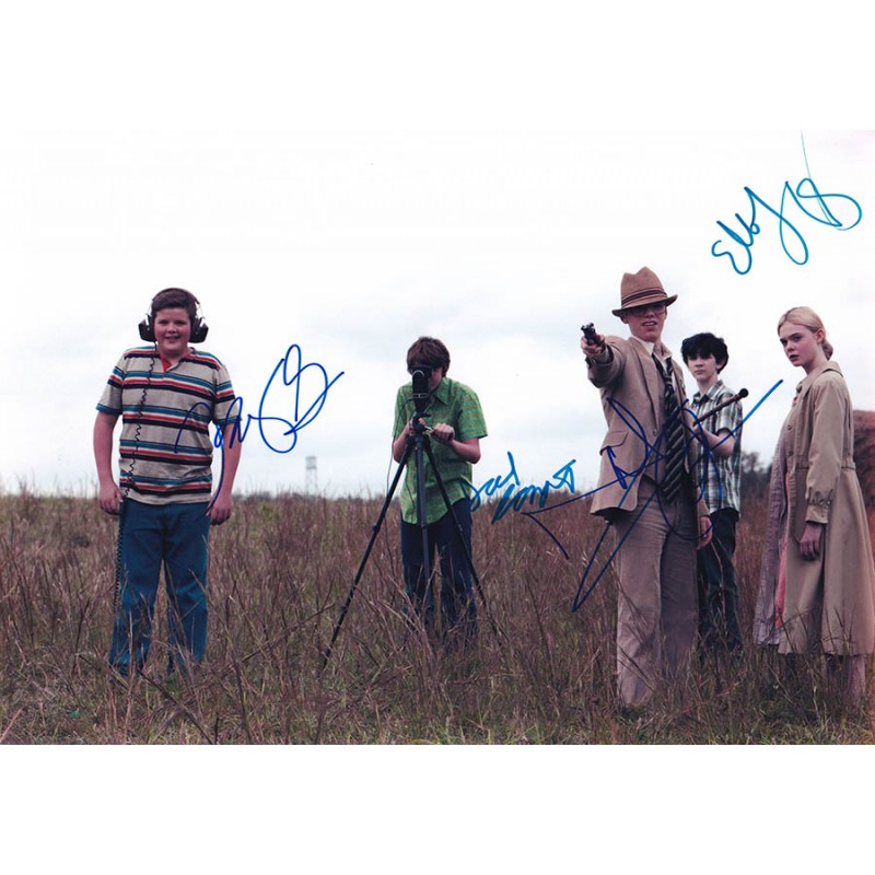 Movie memorabilia signed by Gabriel Basso, Riley Griffiths, Elle Fanning, and Joel Courtney.