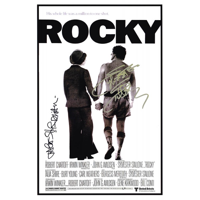 Movie memorabilia autographed by Sylvester Stallone and Talia Shire.