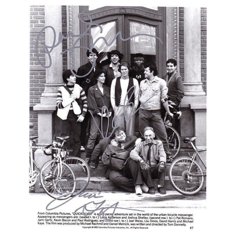 Movie memorabilia signed by Kevin Bacon, Jami Gertz, and Paul Rodriguez.