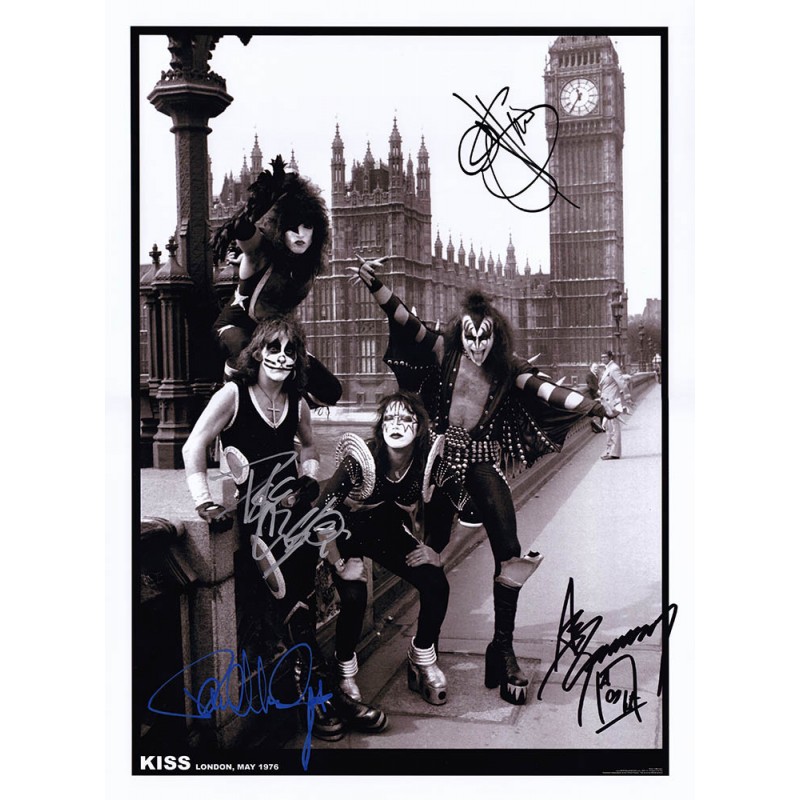 Music memorabilia autographed by Paul Stanley, Peter Criss, Ace Frehley, and Gene Simmons.
