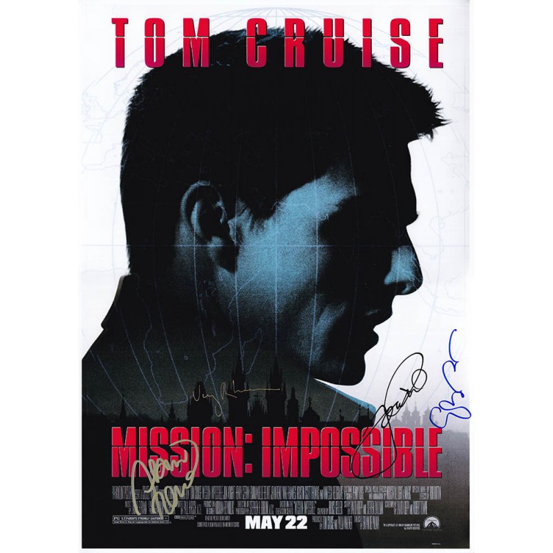 Movie memorabilia autographed by Tom Cruise, Jean Reno, Ving Rhames, and Emmanuelle Beart.