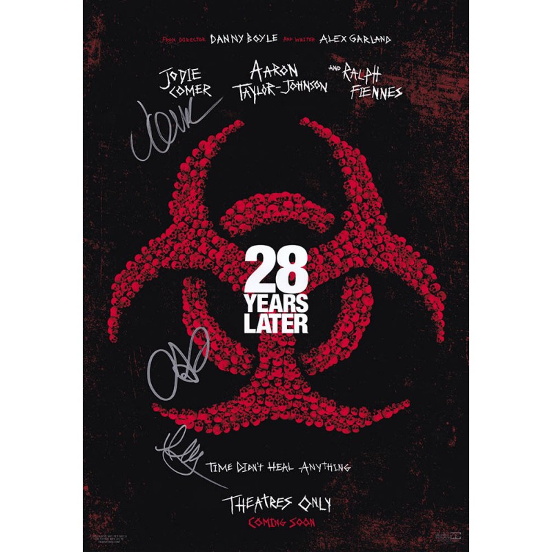 Movie memorabilia autographed by Jodie Comer, Aaron Taylor-Johnson, and Alfie Williams.