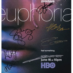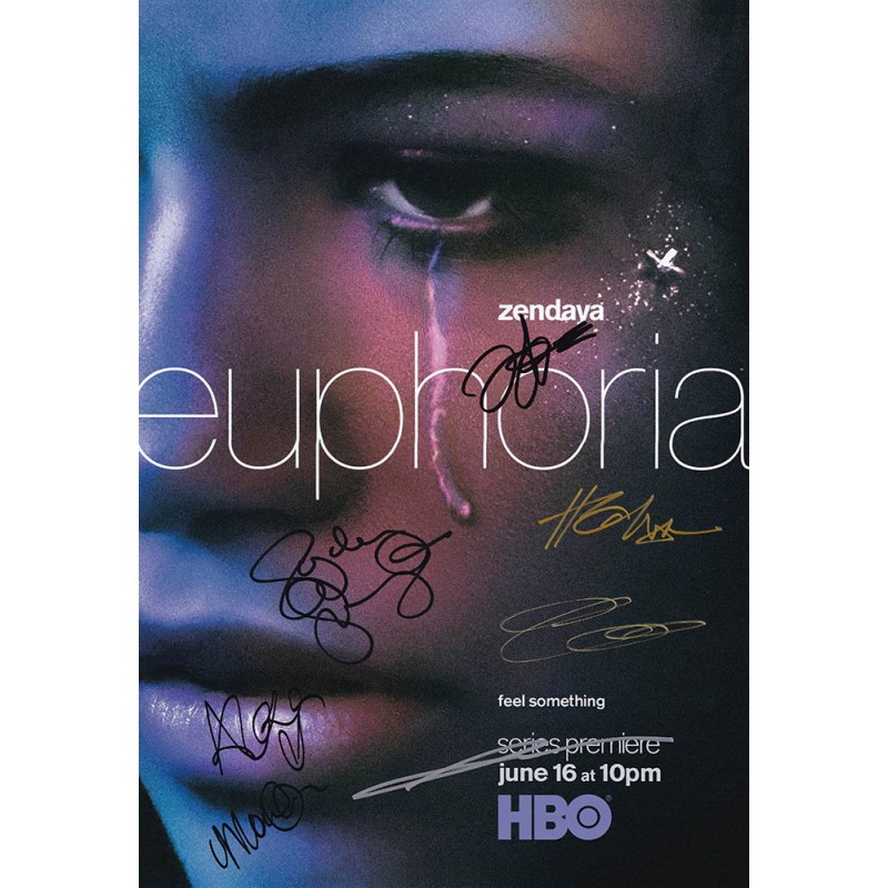 Television memorabilia autographed by Zendaya, Hunter Schafer, Jacob Elordi, Sydney Sweeney, Alexa Demie, Maude Apatow, and Eric Dane.