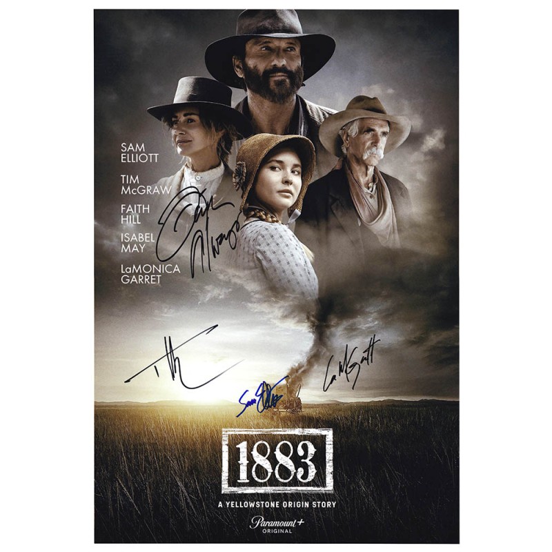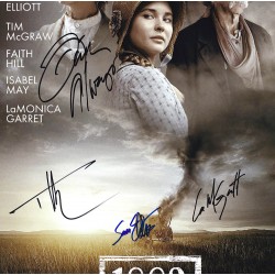 Television memorabilia autographed by Tim McGraw, Sam Elliott, LaMonica Garrett, and Faith Hill.