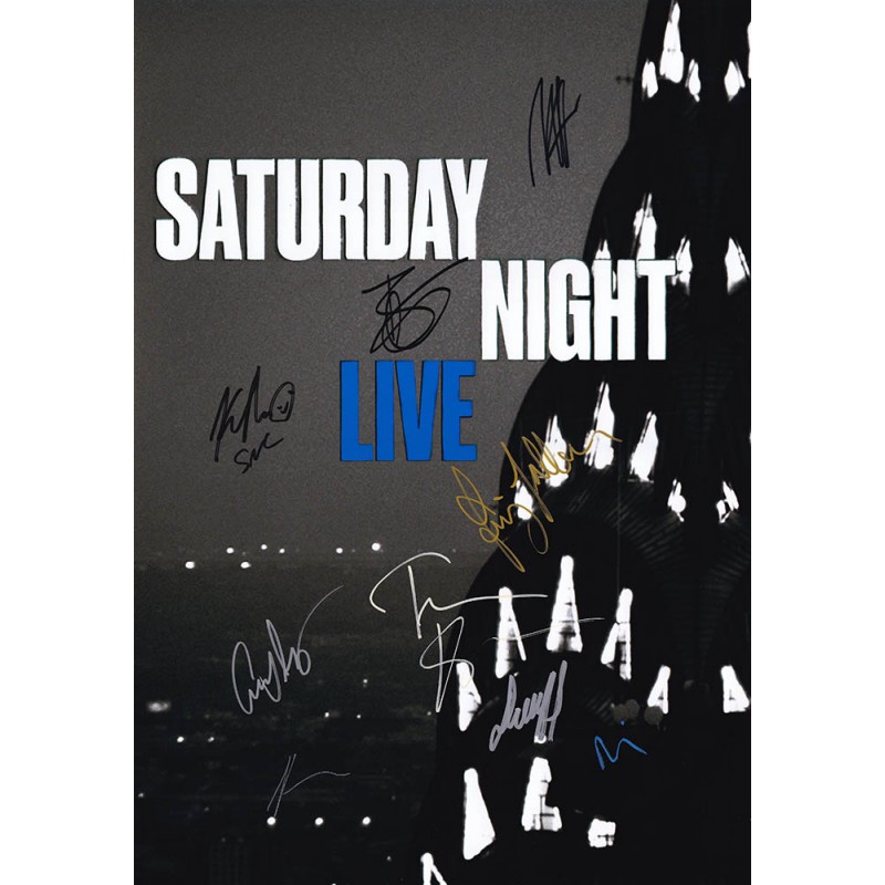 Television memorabilia autographed by Darrell Hammond, Bill Hader, Kenan Thompson, Michael Che, Fred Armisen, Kate McKinnon, Cecily Strong, Jimmy Fallon, and Tina Fey.