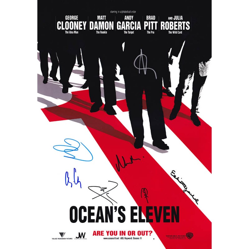 Movie memorabilia autographed by Julia Roberts, George Clooney, Brad Pitt, Matt Damon, Andy Garcia, Don Cheadle, and Elliott Gould.