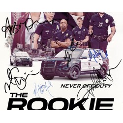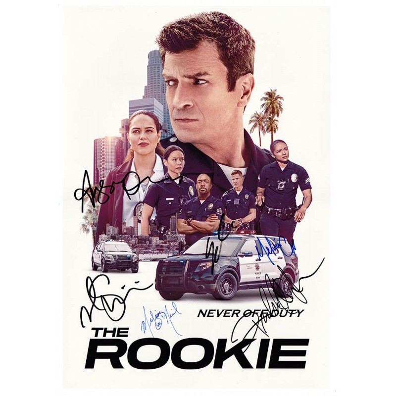 Television memorabilia autographed by Nathan Fillion, Melissa O'Neil, Richard T. Jones, Alyssa Diaz, Eric Winter, and Mekia Cox.