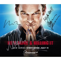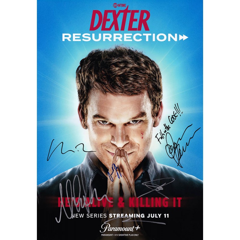 Television memorabilia autographed by Michael C. Hall, David Zayas, Uma Thurman, Jack Alcott, Peter Dinklage, and James Remar.