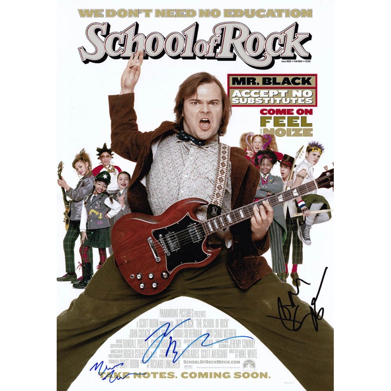Movie memorabilia autographed by Jack Black, Joan Cusack, and Mike White.