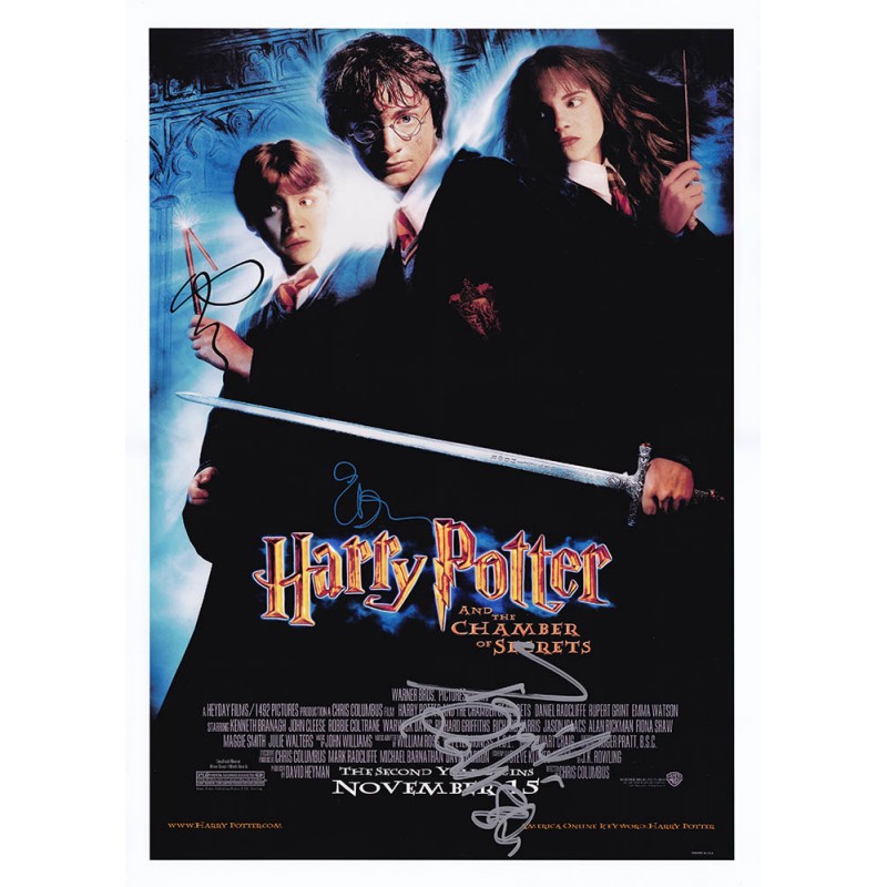 Movie memorabilia autographed by Daniel Radcliffe, Emma Watson, and Rupert Grint.