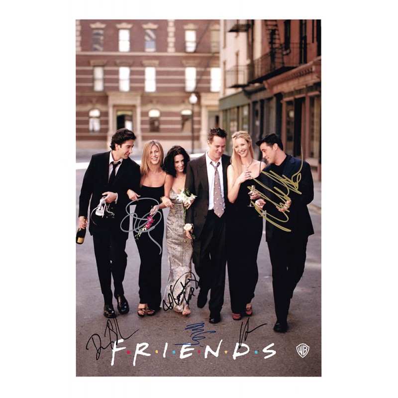 Television memorabilia autographed by Jennifer Aniston, Matthew Perry, Courteney Cox Arquette, Matt LeBlanc, Lisa Kudrow, and David Schwimmer.