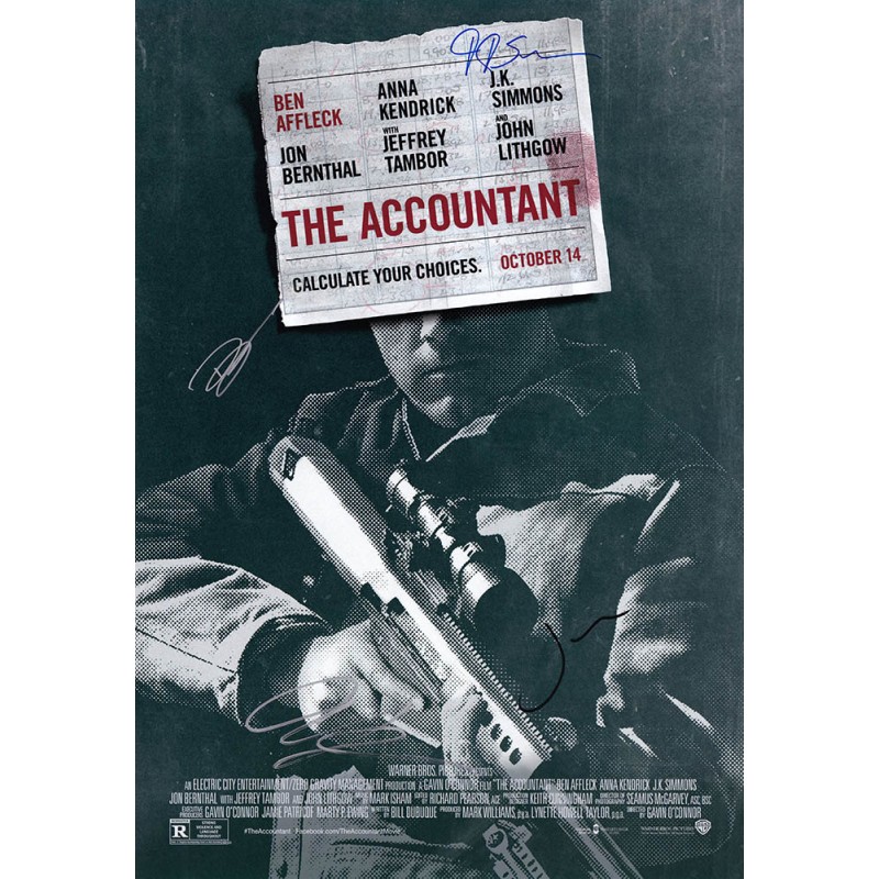 Movie memorabilia autographed by Ben Affleck, Jon Bernthal, Anna Kendrick, and J.K. Simmons.