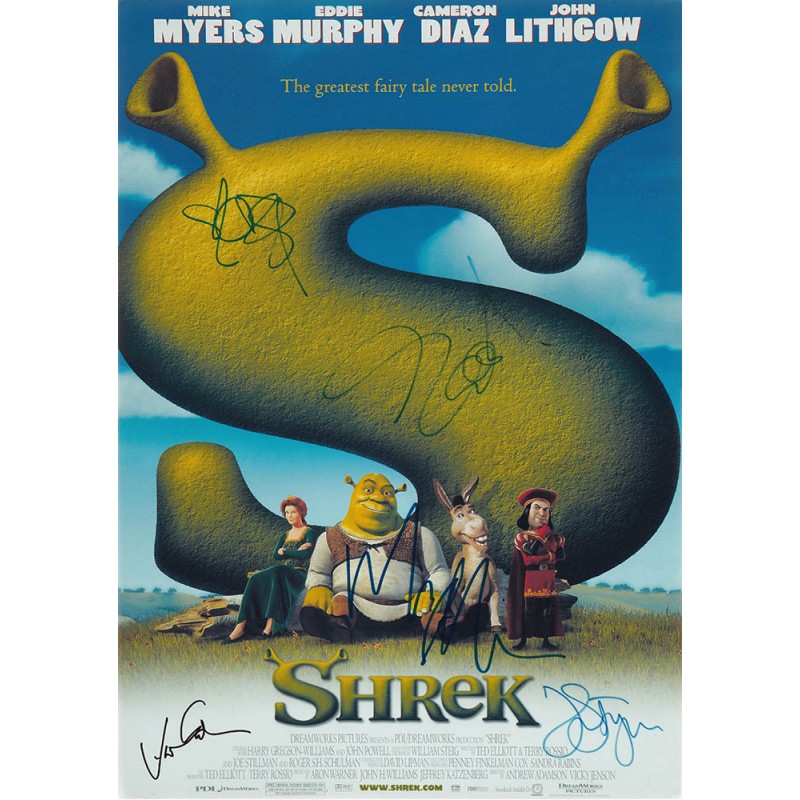Movie memorabilia autographed by Cameron Diaz, Mike Myers, Eddie Murphy, John Lithgow, and Vincent Cassel.