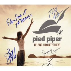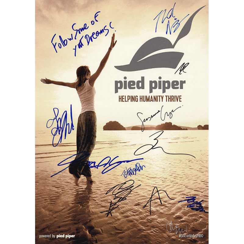 Television memorabilia autographed by Thomas Middleditch, T. J. Miller, Martin Starr, Kumail Nanjiani, Zach Woods, Josh Brener, Jimmy O. Yang, Amanda Crew, Chris Diamantopoulos, Matt Ross, and Suzanne Cryer.