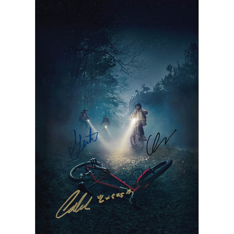 Television memorabilia signed by Gaten Matarazzo, Caleb McLaughlin, and Finn Wolfhard.